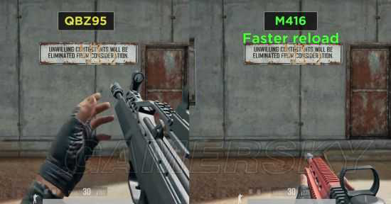 QBZ95入手使用的第一感觉会有点像AUG,这不仅仅是因为结构外形上,更像的点应该就是换弹速度上。所以QBZ95的换弹速度对比M416是稍慢一些的。