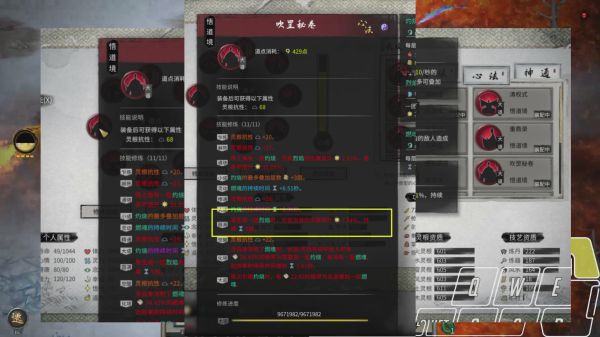 先看功法,左右键是剑修的基础词条,关键词条与水剑一致。