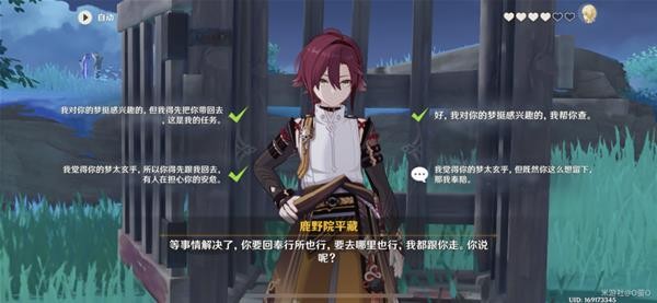 注意‼️这里选择“也许只是个梦而已”会扣颗心。;其他选项任意选择