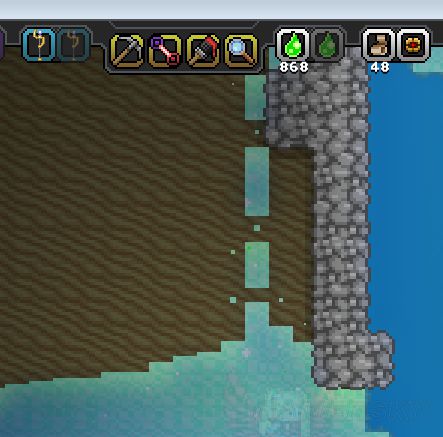 然后我们就探索这个无限水,发现无限水是因为背景会不断的涌出水来,如果把背景填掉就会变成普通的水可以被同化