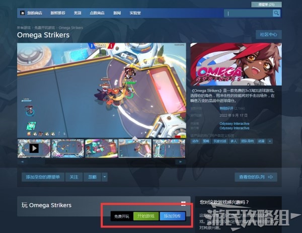 进入Omega Strikers页面后,【开始游戏】或【添加到库】后,即可开始。之后可以在游戏库中找到Omega Strikers游玩。