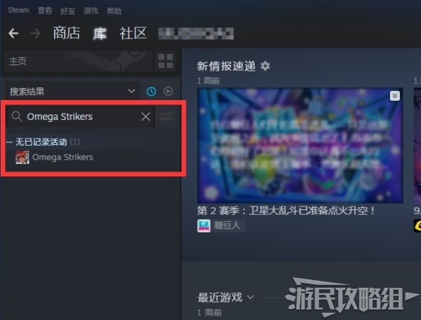 打开Steam客户端,搜索Omega Strikers。