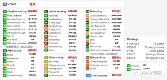 这张卡进攻端的表现只能说稍微可用,有一点空位投射和内线进攻能力,持球能力尚可。防守是这张卡安身立命之本,属性极其优秀,大部分小项都给到了95以上,但可惜力量仅有50,196CM的身高在SG的位置上也并不占便宜。