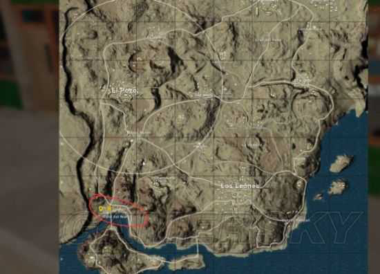 位于地图西南角,南侧临海,但是没有刷船点。距离地图中心区域较远。四周刷车点较多,是属于战术点位。并且容易撤离。