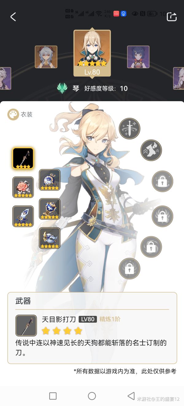 这应该也算一个感电队。行秋负责霸体免伤,挂水和输出;砂糖提供聚怪,加精通;琴团长负责回血,辅助扩散和加攻击。八重和行秋相当于两个副c一起输出,对单对群表现都还算可以。下面是圣遗物和武器截图(行秋是还没专门练,看个热闹就行)。