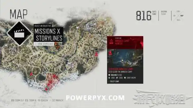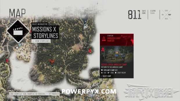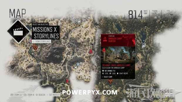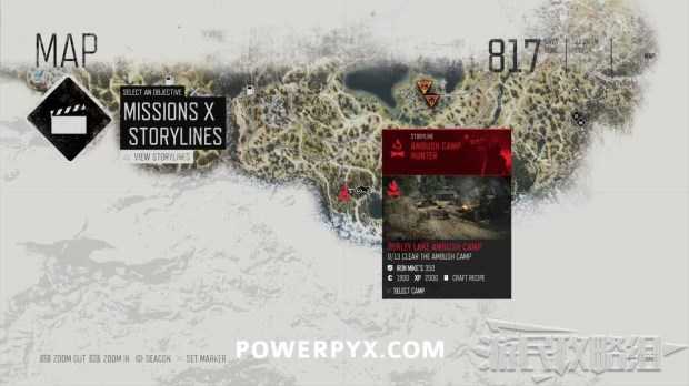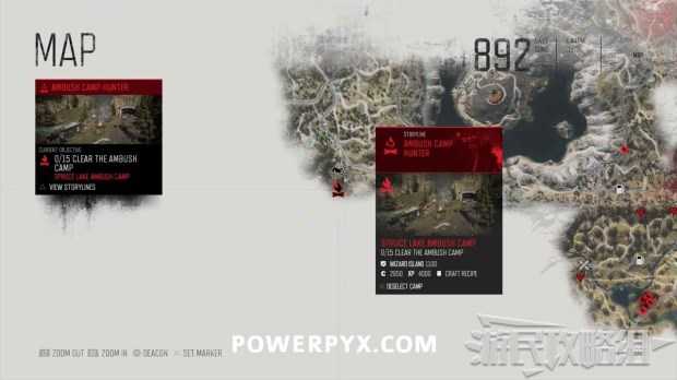 清除所有埋伏营地可以说是本作非常重要的部分之一,因为清除营地后会同时清除地图上该区域上遮盖的雾气,同时标识出其他收集品。并且在埋伏营地处还可以获得一些合成表,以便制作所有类型的十字弓箭矢来解锁“变化是生活的调味品(使用每一种十字弓箭矢杀死敌人)”奖杯。