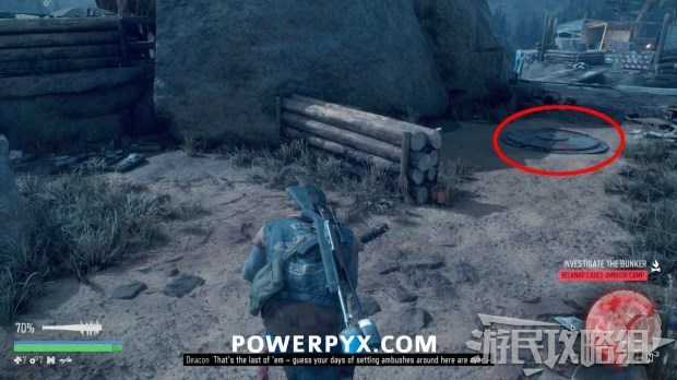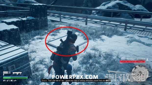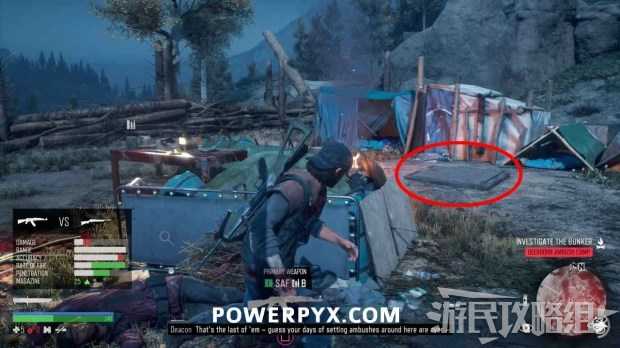 地下避难室位置:位于山顶上敌人较少的一侧(就是异变者们睡觉的山洞正上方),就是发现狙击手所在位置的营地另一侧。