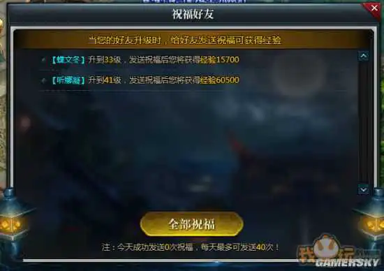 进入游戏后不管别的,先做主线任务狂升级,在你升级的同时可以加一些其他玩家为好友,好友之间升级赠送祝福也是有奖励的哦!
