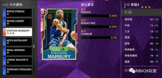 不过狼王进化卡的最终形态和韦德一样,仅是紫水晶级,最后一级的升级条件如下,看起来比韦德要简单一些。如果现阶段如果大家没有高质量PF的话其实这张加内特完全可以拿来用,除了投篮包略有些不舒服之外,内线攻防相当不错。
