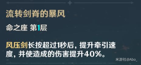 琴的核心命座之一,一命可以增加风压剑的转速以及长按风压剑的伤害,在拥有了一命之后琴可以直接跑到怪堆里长按E技能,一命之前跑进怪堆里长按风压剑技能大概率会被打断,一命相当于直接增强了风压剑的伤害以及聚怪能力,低命时对琴提升最大的一个命座