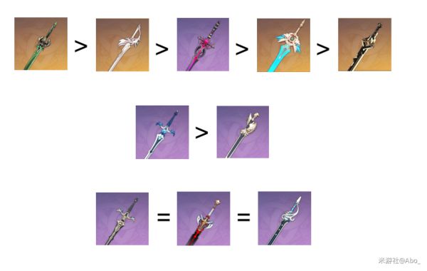 斫峰之刃:斫峰之刃排名在五星垫底甚至比不过腐殖之剑并不是它不好,斫峰之刃属于目前所有单手剑中上限最高的一把单手剑,但是就是不适合琴,琴几乎不站场所以吃不到斫峰之刃特效,想要护盾还需要队伍中佩带一个护盾角色,这既不符合琴的定位,也不符合这把武器的定位,双方互不合适,在一起不会有结果的(bushi)
