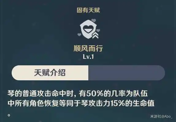 琴的普通攻击以及重击在单手剑角色中都比较优秀,但是琴的普通攻击手感并不好,并且由于大多数琴都是作为副C来培养所以很少会用到普通攻击,配合固有天赋1可帮助队伍恢复少量血量。
