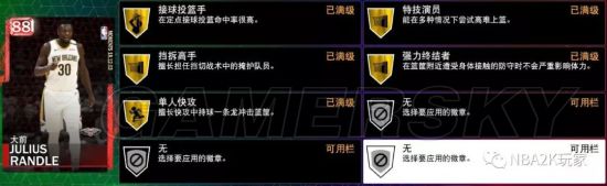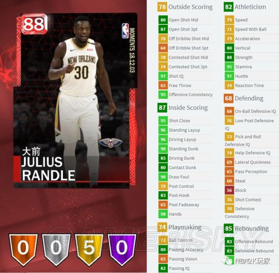 这张兰德尔红宝石球员卡最突出的地方在于他的内线得分能力和空位投射,但防守实在是有点不够看。