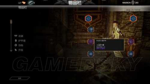 武器为23级蓝法杖,主要看中了其两点属性:+39魔法,可以提高屏障上限;2%几率释放影界击,等于又增加了一个控场技能。