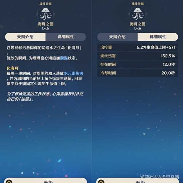 心海的普通攻击,如果你不是特别注重心海本身的输出的话,你可以不太用升级这个技能,主要用来挂水打反应的话这个普通攻击是不需要点太高等级的。