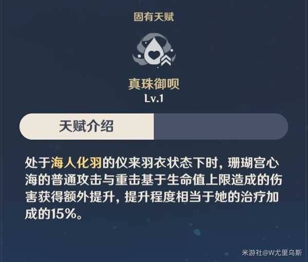 心海这个固有天赋,开起大招后,普攻伤害与重击还会在获得额外提升,提升程度是相当于心海治疗加成的15%。