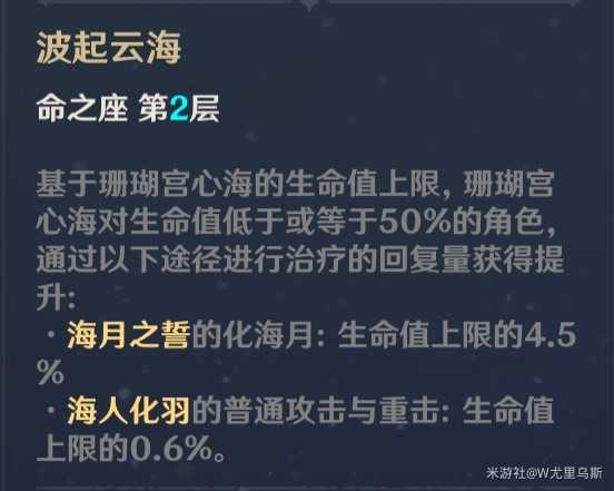 提升心海的治疗能力,低于50%的血量的角色还会获得以上治疗加成提升。