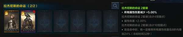 【拉杰尼斯的命运】:2张。10觉可以属性增伤24%。