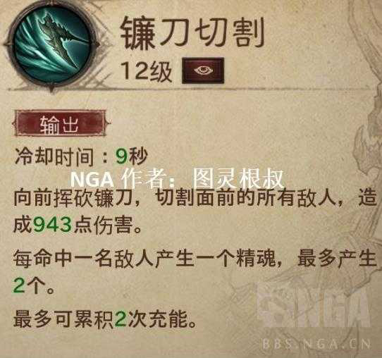 镰刀切割:1级可学,AOE伤害,带这个技能的玩家比较少,只能攻击前方范围的敌人,一般在过渡时期使用的