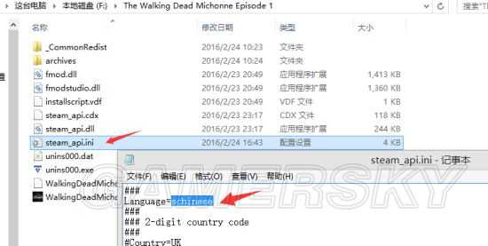 如图所示,找到根目录下的steam_api.ini文件,用记事本打开。