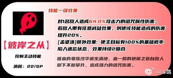 ②【孟婆汤】额外效果,【彼岸花】的增伤效果翻倍。