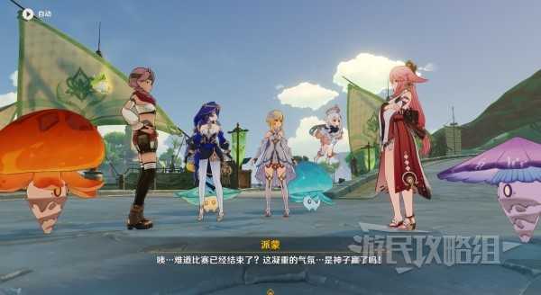 这场比赛对战莱依拉,对手阵容为:旋转电蕈兽、旋转冰蕈兽、伸缩风蕈兽、浮游风蕈兽。我方组队时水元素蕈兽是必须使用的,其他的蕈兽可以自由选择。搭配好阵容之后,开始比赛,前往黄色光点位置触发剧情。剧情结束后,开始战斗。