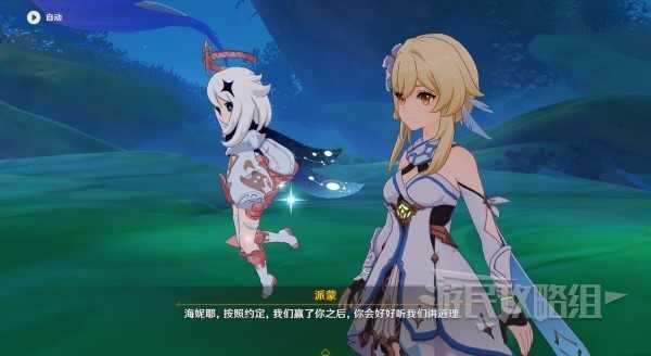 本场比赛我们需要对阵海妮耶,对手阵容为:旋转火蕈兽、伸缩火蕈兽、伸缩雷蕈兽、伸缩风蕈兽。我方组队时固定使用浮游水蕈兽以及神子和莱依拉的主力蕈兽,其他的蕈兽可以自由选择。搭配好阵容之后,开始比赛,前往黄色光点位置触发剧情。剧情结束后,开始战斗。这次我们只需考虑队伍四号位的选择,推荐选择岩蕈兽,打法步骤就是利用风蕈兽聚怪→岩蕈兽打出范围伤害,必要时使用水蕈兽回血,基本没有难度。