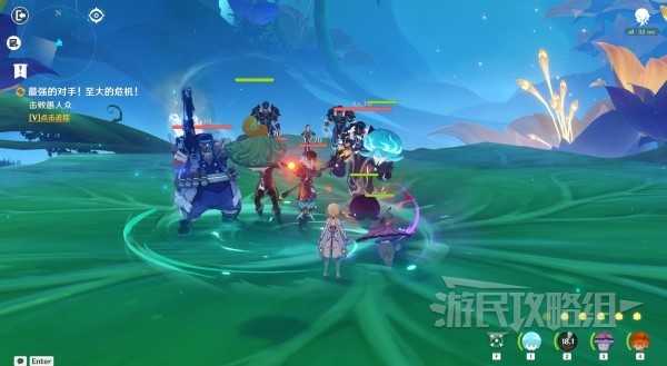 剧情结束后开始与愚人众的战斗,战斗难度不高,利用风蕈兽聚怪→火蕈兽打出范围伤害即可。
