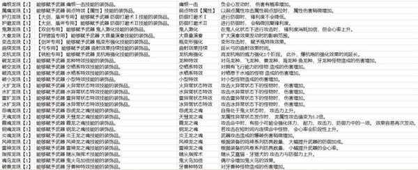 剩下的就是百龙槽位对应的技能效果了,这个参考下这张表格就行。