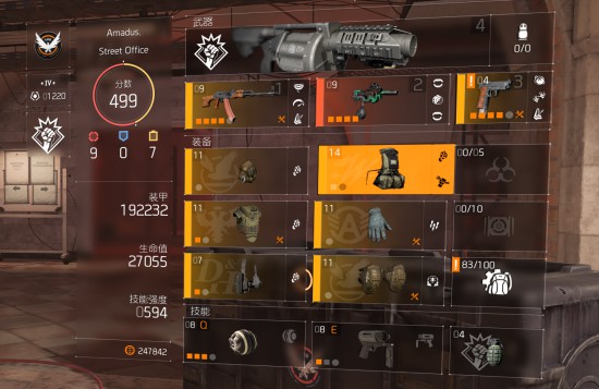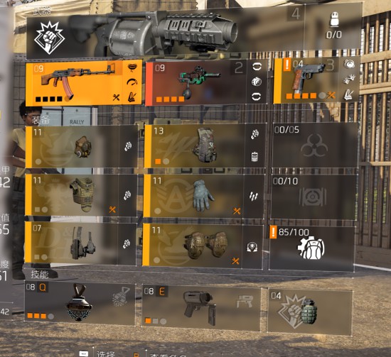 主要配装思路就是全火的基础上靠废词条和技能插槽堆出7点电力集活背包的陷入困境,这是提升上限的一种手段。