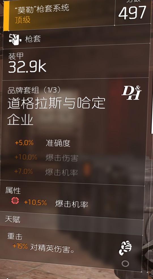 道格拉斯枪套只是强行凑个5%准确度的套装属性,当然你也可以把护膝换成道格拉斯的护膝,组成两件套提升10%的暴击伤害。