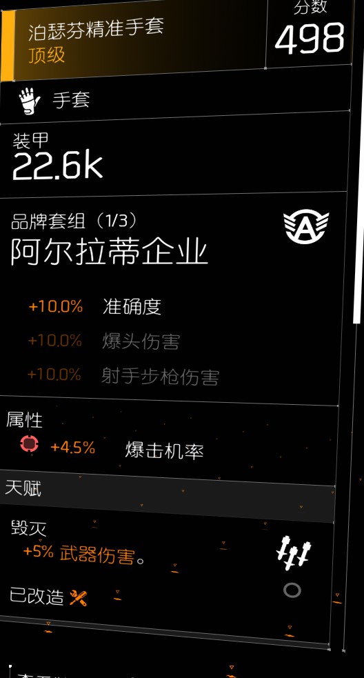 手套完全就是凑个10%的套装属性可以无视,你想的话换个阿尔卑斯也行,有好的就用。
