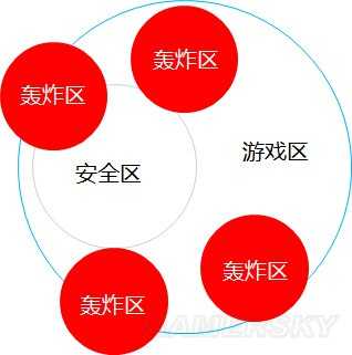 现在轰炸区(红圈)不会出现在安全区(白圈)中心位置。