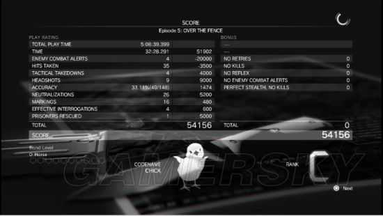 另外我看的这个主播虽然自称是MGS迷,但是一次零警报都没,我猜也还是需要适应,所以我并不知道额外加分项会加多少分,(尽管今天再看他依旧各种警报)估计也是因为玩的PS3盗版的原因吧(就是不好好打(╯°□°)╯。
