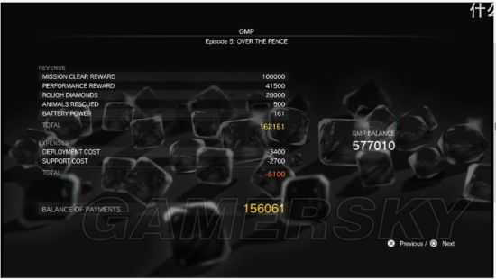 完成任务奖励,表现奖励(也就是上面的得分换成GMP),粗糙钻石数奖励,营救动物数奖励,电池电量奖励(这个没看懂)