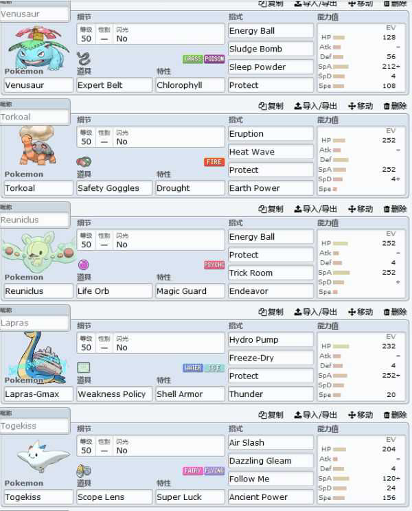 先说下组队思路(其实我组队技术很差,而且一开始是想玩真空波弱策咆哮虎的×)。结果S4第一天满世界咆哮虎(不亏是宇宙第一),于是我把目光抛向了同样可以真空波触发弱策的cjj拉普拉斯,第二核心选择了新解禁,可以和拉普拉斯联防草、斗、电的妙蛙花(其实只是新赛季用时髦的新解禁宝可梦而已)。