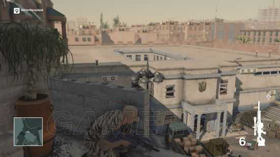 先杀银行家。开始出生在楼顶,把大妈弄晕,拾起狙击枪。对着对面。银行家一出来就崩掉。然后去找校长。把校长做掉后,跳到旁边的楼层,里面有个凹凸处。完美狙击点。将军出来看风景的时候