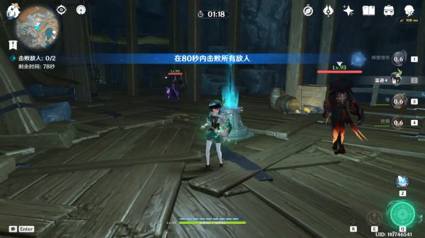 如上图所示,挑战内容为在80秒内击败雷萤术士和讨债人。
