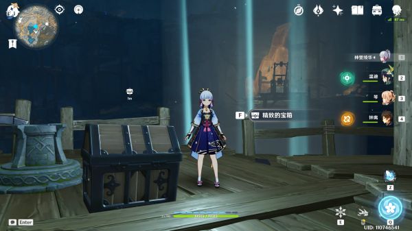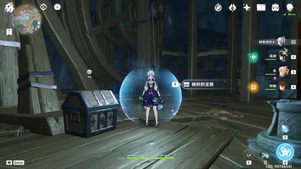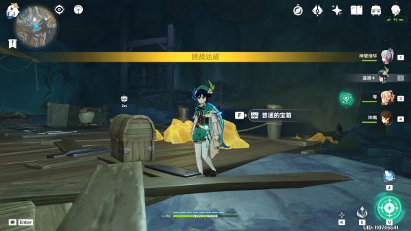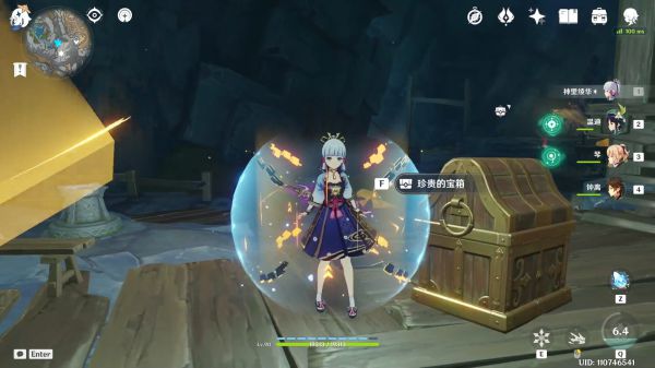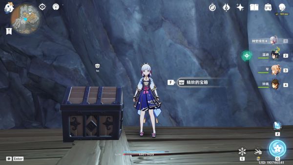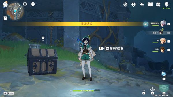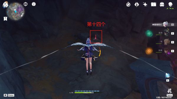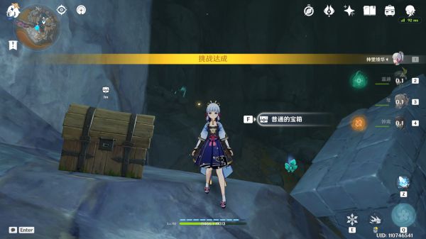 如上图所示,挑战内容为在40秒内拾取5个岩之微粒。最后会有一个向上风场让你返回拾取宝箱。