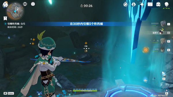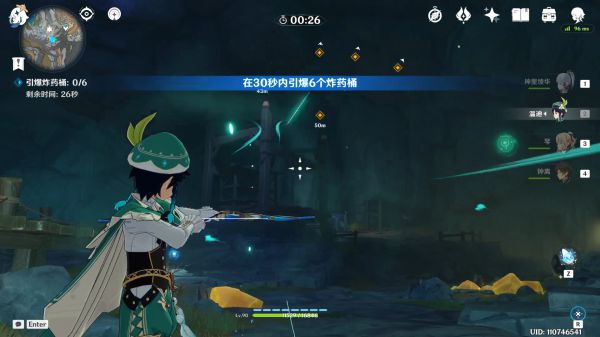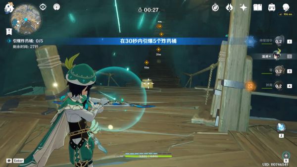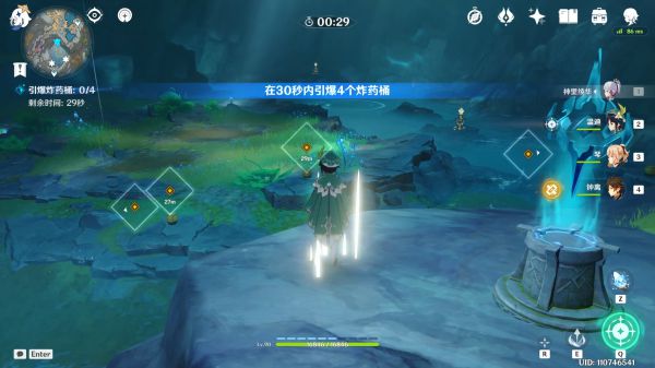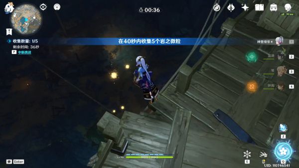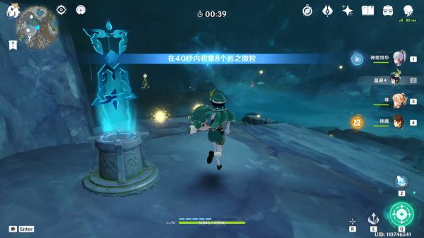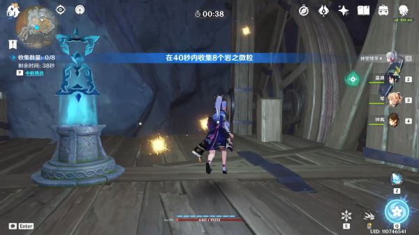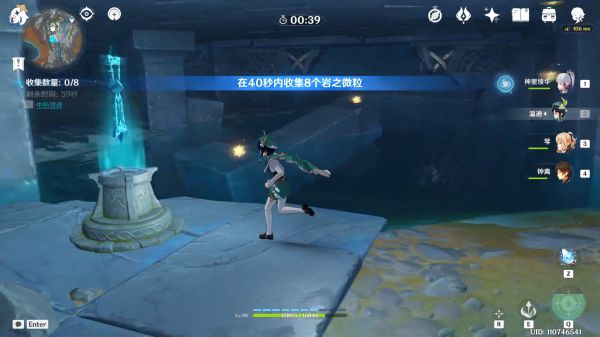 如上图所示,挑战内容为在40秒内拾取8个岩之微粒。