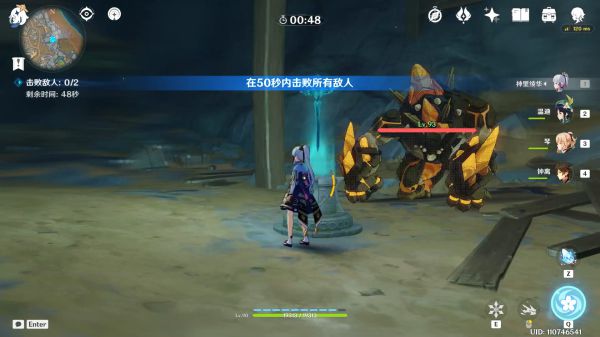 如上图所示,挑战内容为在50秒内击败两只小岩兽和一只大岩兽。