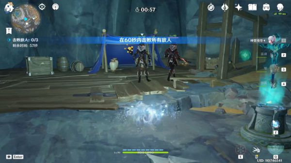 如上图所示,挑战内容为在60秒内击败岩、火游击兵和水镜女。