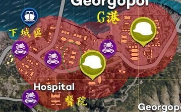 以我们队伍为例,我们队伍基本上只去G港的下城区,即地图上集装箱左边那一片城区。如果没人伴飞,那基本上后面几分钟也不会有人过来了(FPP模式独有的玄学?),队伍就可以分散开来搜刮直到肥到捡不下为止。如果有其他队伍目的相同,那么我们会跳的集中,4个人集中在双拼6栋房(图中绿圈)。