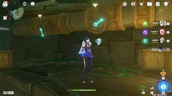 下到底部,此处可以找到芒性能量块,拾取后攻击能量柱,出现蓝色机关,拾取