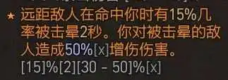 这玩意分两个,一是技能界面会显示此技能的幸运一击几率【图示的骨矛就是50%】,然后装备上会带有幸运一击,多少几率造成XX【下图的易伤眩晕】,这两个需要乘法计算。