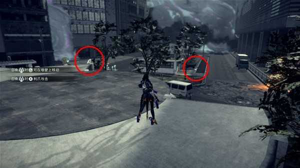 乌鸦与猫:2-1 ,从铁路下来后触发VERSE 2战斗,之后跳上右边停车场前的建筑可以看到乌鸦和猫的位置。乌鸦的落点位于旁边的保安亭上,抓猫需要先破环停车场的车子。