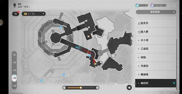 首先传送到1层勘录舍●栈道,按照箭头所示寻找即可(地图可能是灰色的):