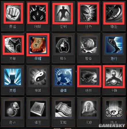 DPS重点看勇猛、狂热、嗜血、荣耀、绝技;TANK重点看刚毅、坚韧、灵敏、冷静;奶重点看荣耀、绝技。