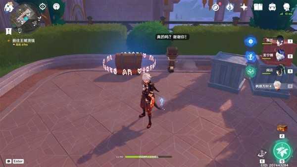 击败阳台上的丘丘人,交互木箱后的积木小人“已经安全啦!”,获得普通的宝箱④