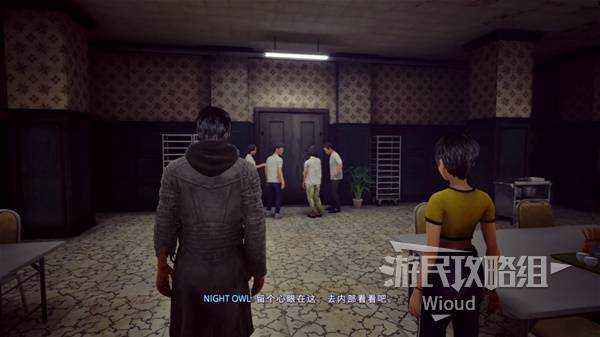 这个关卡是银月的剧情线,进入关卡直接出生在食堂内,发现一群信徒围绕着禁区的门。
